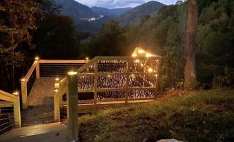Bear Branch Bliss is a cozy mountain retreat near Wolf Laurel with breathtaking Blue Ridge views. Relax in the hot tub, gather around the new smokeless fire pit, or cook outdoors on the new 4-burner grill with griddle option. Wildlife abounds — watch yellow finches, hummingbirds, deer, and wild turkeys in a serene, peaceful setting.