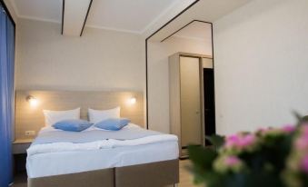 Standard, Deluxe, and Studio rooms are available for booking. Each of them is equipped with a TV, air conditioning, electric kettle, refrigerator. The private bathrooms are equipped with a shower cabin. Studio rooms have a kitchenette with an electric stove and a washing machine, as well as a dining area.