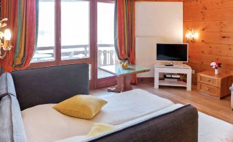 Beautiful residence "le Bristol", 6 storeys. In the resort 500 m from the centre of Villars. For shared use: indoor pool kidney-shaped heated. In the house: lift, storage room for skis, central heating system, washing machine (extra), tumble dryer (for shared use, extra). Motor access to the house. In Winter: please take snow chains. Grocery 750 m, restaurant 50 m, bakery 550 m, 9 minute walk to the centre, bus stop 500 m, railway station "Villars" 500 m, indoor swimming pool 700 m, thermal baths "Lavey-les-bains" 19 km. Golf course (18 hole) 7 km, mountain railway 500 m, gondola lift 1.9 km, ski bus stop 20 m, ski school 550 m, ice rink 900 m. Free ski bus service to the ski region Villars. Please note: Additional accommodations can be booked. Closed Hotel section: No reception. "Le Bristol A54", 2-room apartment 57 m2 on 5th floor. Bright, comfortable and beautiful furnishings: large living/sleeping room with 1 double sofabed (2 x 80 cm, length 200 cm), dining table, bath/WC and TV (flat screen), DVD. Exit to the balcony, west facing position. 1 double bedroom with 2 beds (90 cm), bath/WC. Exit to the balcony. Kitchenette in the entrance (mini-oven, oven, 2 ceramic glass hob hotplates, toaster, kettle, microwave, electric coffee machine, raclette grill, fondue Set (cheese)). Balcony 14 m2. Balcony furniture. Very beautiful view of the mountains and the valley. Facilities: hair dryer. Internet (WiFi, free). Please note: non-smokers only.