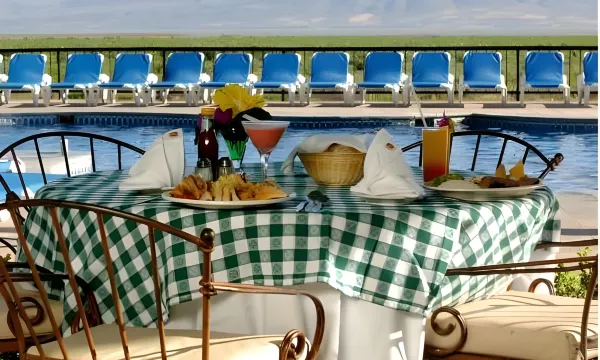 Khách có thể dùng bữa trưa hoặc bữa tối tại nhà hàng của Khách sạn hoặc chọn nghỉ lại trong phòng và gọi món với dịch vụ phòng (có giới hạn thời gian). Hãy thư giãn cùng với ly nước giải khát yêu thích của mình tại quầy bar/khu lounge hoặc quầy bar bên hồ bơi. Khách có thể dùng bữa sáng nấu theo yêu cầu (có phụ phí) từ 8:00 đến 12:00 hàng ngày.