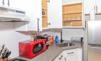Kitchen: Our fully equipped kitchen is ready for all your culinary needs. With modern appliances, ample counter space, and all necessary cookware and utensils, you can easily prepare your favorite meals. Enjoy your dishes at the cozy dining area that seats four.