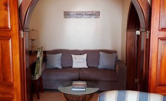 The family room boasts a 55" hi-def smart Samsung TV, a Bose Bluetooth speaker, and comfortable seating for 6. It boasts spectacular views of the ocean right from the sofa. Off the family room is the office. It has a large desk with a lamp, a charging station, and a new queen-size pull-out sofa. The large Mahogany doors can be closed to give privacy. A perfect area to get some work done play a game or read a book.