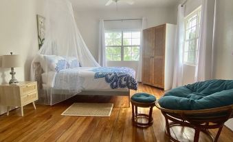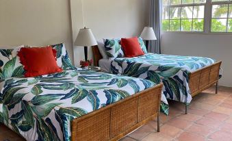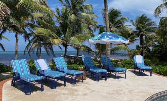 The second floor features two master suites with private baths plus a comfortable living area and walk-out verandah. On the lower level, enjoy the full kitchen with mahogany custom cabinets, breakfast bar, family room area, dining room, laundry room and walk-out verandah, plus two more bedrooms and one full bath. The villa is fully air-conditioned and all rooms have ceiling fans. The villa is beautifully decorated with Belizean hardwoods, custom hand-painted tiles, paintings by local artists, plus other subtle details from around the globe, and is completely equipped. Sleeps eight.