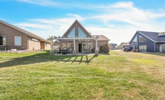 Well appointed 3 bedroom, 2 full bath cabin plus a large loft. 2 bedrooms down-1 queen, 2 twin beds in 2nd. Upstairs has a large vaulted ceiling loft with spacious seating area, sofa sleeper, flat screen tv, dvd player. Upstairs bath has a beautiful, fully tiled shower and both bathrooms have heated floors and hairdryers. Cabin is fully stocked with towels and linens for up to 8 guests. Large capacity, front load washer and dryer on main level. Gorgeous custom brick patio with full pergola, cozy rattan seating, lounge chairs, dining table and chairs and a fire pit. Nice gas grill. Well equipped kitchen has dishwasher, french door refrigerator/freezer with two ice makers, microwave, electric range with two ovens and even a blender! Bar counter with 4 stools off kitchen. Large two story living room and dining room with beautiful wall of windows showcasing the unique outdoor living space. Roku and wireless internet included throughout the cabin! The large Bridges Bay resort property boasts convenient lake access and dock, Boji Splash, Okoboji's only indoor waterpark, arcade, fitness and exercise room, several outdoor swimming pools, fishing pond, as well as Bracco Waterfront Grill and Bar which showcases breathtaking sunsets over East Lake Okoboji. Six passes to water park each day are included in rental. Boat ramp nearby for launching watercraft. Access to paved bike trail through Iowa Great Lakes area is just down the road from the resort entrance. Historic Arnolds Park Amusement Park is within a mile of the property, which also hosts concerts at Preservation Plaza during peak season. Several public golf courses are located nearby. Wide variety of restaurants and bars throughout the Iowa Great Lakes area.