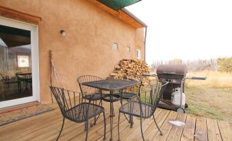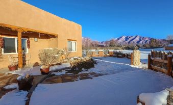 Nestled at the foot of Taos Mountain off the Valdez Rim Road, Stella Luna, our 1500 square foot, two bedroom, two bath home sits on a quiet lane. It's just 15 mins from the slopes of Taos Ski Valley, 15 mins from the Town of Taos & Taos Plaza, and 5 mins from the charming village of Arroyo Seco. Extraordinary views in all directions, high ceilings throughout, large windows, and a floor plan that offers both open space and privacy come together to create a home that graciously welcomes you back after a day of skiing, sightseeing, or shopping. In fact, if you're like us, you might never want to leave Stella Luna at all!