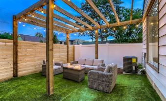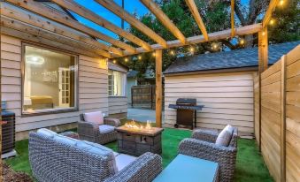 Cozy, open concept floorplan offers a comfortable space with a smart tv with Xfinity cable, as well as a special closet behind the barn door with books, games, cards, puzzles, toys, and a wifi printer. Full kitchen. Each bedroom has a brand new memory foam mattress, bed with 2 reading lights, side tables & smart tv. Full bath. All linens included. Backyard with firepit, string lights, & pergola.