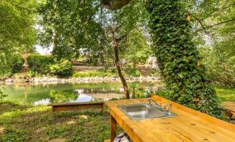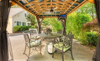Spacious shared patio with lighted gazebo and grills/smokers/firepits. Private riverfront area with picnic table, chairs and bonfire pit.