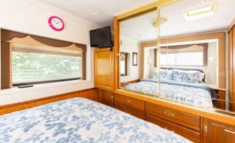 The RV was charming, private and so very comfortable and our host was very quick to respond and accommodating. The grounds were beautiful with a gazebo and outdoor amenities amenities with a lovely riverside view. Just steps away was a forest with walking trails. Overall, the experience succeeded our expectations!