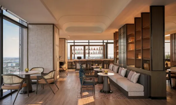 Khi đến khách sạn, nhân viên lễ tân rất thân thiện và thủ tục nhận phòng khá nhanh chóng. Sảnh được trang trí bằng những gam màu ấm áp với ánh sáng dịu nhẹ và nội thất đơn giản, trang nhã, tạo nên một bầu không khí thư giãn n*** từ khi bạn bước vào. Đặc biệt, có một khu vực tiếp khách nhỏ bên cạnh sảnh, phục vụ trà và báo miễn phí, một nơi tuyệt vời để chờ đón bạn bè hoặc thư giãn một lát.
