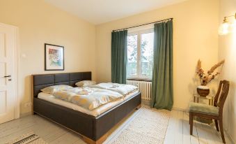 Sleeping: 1 cozy bedroom (with king-size bed 180x200cm), as well as a spacious closet with quick access to the bathroom. You also have a wonderful view of the peaceful orchard.