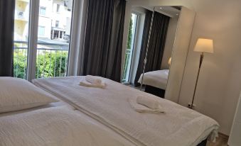 The separate kitchen offers everything you need to prepare your meals, including an electric stove, oven, microwave, refrigerator, dishwasher and other kitchen utensils. The dining area invites you to enjoy together. In the bathroom you will find a modern shower, a sink, a toilet and a hair dryer. Towels, bath towels and a soap dispenser are available for you.