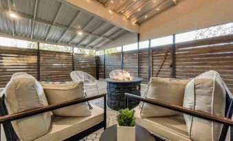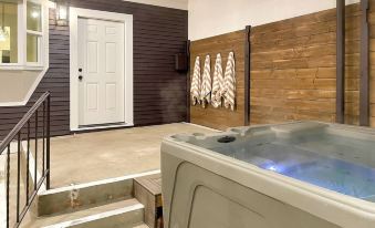 Enjoy the private patio, perfect for your evening entertainment. There you will find a hot tub for 4, a cozy fire-pit with seating for your group, all in a space just off the kitchen.