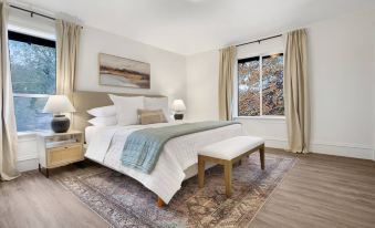 As you ascend the staircase, you'll discover the four cozy and well-appointed bedrooms, each bringing tranquility and a restful night of sleep. There are two upstairs bathrooms which provide ample space for each guest. Sink into the comfortable beds (all brand new mattresses) and linens to enjoy a restful night's sleep.