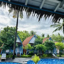 Очень милый отель не далеко от порта, удобно для 1 - 2 ночей. Рядом есть кафе, аренда байков и 500 метров порт. У нас был угловой домик там было чуть шумно вечером караоке и петухи. Но номер очень чудесный и приятный.