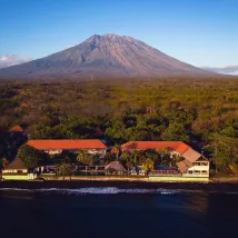 Very warm welcome with fresh juice and cold towel. Admin done in 3 minutes. We stayed in a seaview deluxe room which was very charming, well decorated, vary spacious and we even had our own sunbeds on the terracce. We enjoyed cocktails at the sundowner lounge, which again was very well decorated and next to the ocean. Breakfasts and all meals at the restaurant were delicious and actually pretty cheap. I did a couple of dives and the guides were very helpful and knowledgeable whilst my wife was enjoying some treatments at the spa. Sunrise right in front of us was another highlight. Very much recommended dive resort at Tulamben.
