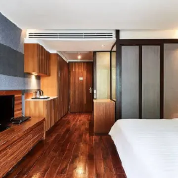 Suite rộng 2 phòng ngủ thích hợp cho gia đình hoặc bạn bè đi du lịch mà không làm phiền nhau. Môi trường rất yên tĩnh, có nhiều cây xanh và tôi thích không khí trang trí bằng gỗ. Nó khá xa trạm BTS và MRT, mất 15-25 phút đi bộ và vỉa hè không dễ đi bộ. Nhân viên khách sạn rất thân thiện và cơ sở vật chất của khách sạn rất tốt. Có một quán cà phê nhỏ trên tầng hai. Mua bánh mì và tự nướng cũng rất thuận tiện. Thật không may, có ít phích cắm trong phòng và Internet rất chậm. Sẽ thật hoàn hảo nếu có máy giặt!