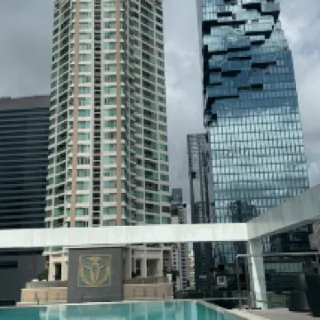 2. Hồ bơi trên tầng thượng ở tầng 10 với tầm nhìn tuyệt đẹp ra ga tàu và Tháp Mahanakhon.