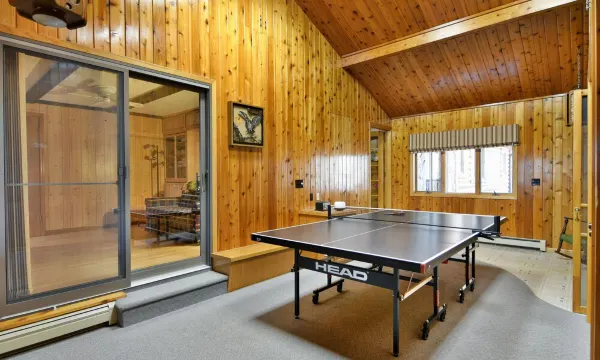 This property is one of a kind! The house is tucked away amongst 20+ acres and has 1,000 feet of sand frontage on Middle Eau Claire Lake. Middle Eau Claire offers trophy fishing, recreation, and water clarity that is second to none. The house offers an open concept floor plan that is perfect for entertaining and great for two families. Enjoy family game nights in the ping pong room, coffee in the porch over looking the lake, al fresco dining, and fishing off the two docks! The shoreline has a hard sand bottom that offers great swimming for all ages! There is a nicely landscaped walk-way to the water's edge, where you will find sitting areas and fire pit. The house offers two primary bedrooms on opposite sides of the house with ensuite bathrooms. There is another bedroom with queen and twin bunk bed and a den with two XL twin beds with a full bathroom conveniently located between them. There is also a pull out couch in the large living room with size double mattress(fine for kids), a queen air mattress and crib. Blackout curtains in all bedrooms.