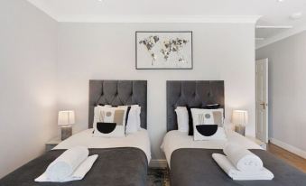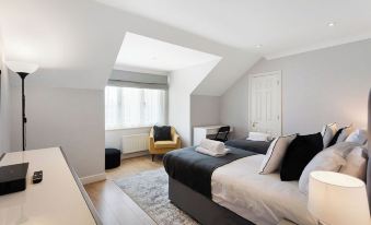 The penthouse features two large bedrooms designed for restful nights. The master bedroom offers a Super King bed with ensuite bathroom, while the second bedroom provides two single beds, perfect for families, colleagues, or friends. An additional guest toilet adds extra convenience for longer stays.