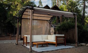 The nature filled back area of the property has an outdoor bathroom, deck, and 2 additional dwelling units, one with queen bunkbeds and private deck, the other is a hype dome with clear panels and an epic view giving a more intense and intimate nature experience.About pets:Pets allowed: less than 50 lbs per pet (limit one pet total).About checkOut:Check out before 11:00 AM.About children:Children allowed: ages 0-17.About checkIn:Check in after 4:00 PM.About smoking:Smoking is not permitted.About minBookingAge:Minimum age to rent: 21.About events:No events allowed.