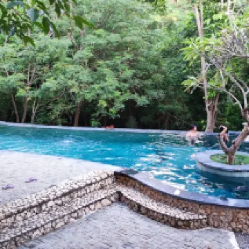 Отель понравился, очень красивая территория и очень тихо. Далековато от города, но байк решает эту проблему. Предлагается два типа завтраков - индонезийский и континентальный. Берите индонезийский, он очень вкусный и сытный, а вот континентальный вообще не понравился - просто холодный омлет и кусок хлеба без стандартных джема и фруктов. Возле бассейна есть удобная беседка, где можно полежать, но к сожалению только одна, так что если она занята, то отдохнуть возле бассейна негде, нет шезлонгов и тд.