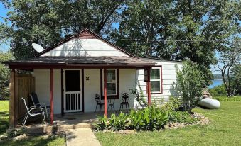 This quaint cottage on Norfork Lake in the AR Ozark Mountains features an incredible, scenic lake/mountain view. This charming 1 bedroom, 1 bathroom cottage features a KING bed in the bedroom and a full bed in the common area, sleeping 4 guests (couch is a full size sleeper). Cottage has L-shaped screened in porch and an excellent view from the bluff of Norfork Lake. Walk (steep) or drive (truck or SUV) down to our private swimming/fishing dock. Relax on a hammock and listen to nature, look a the lake or the stars, view woodland wildlife or enjoy playing basketball, horseshoes, or bag-o with the family! Located just 7 miles outside Mountain Home, AR, next to Bidwell Point Park swim beach, 1/4 mile to 101 Marina for boat rentals and up the road from David's Trail/Panther Bay Park/Launch/Swim Beach. Affordable, super clean, amazing lake view - come check out what AR Ozark lake living is all about!About pets:Pets allowed: dogs and cats less than 50 lbs per pet (limit 2 pets total).2 pet max.About checkOut:Check out before 10:00 AM.About children:Children allowed: ages 0-17.About checkIn:Check in after 3:00 PM.About smoking:Smoking is not permitted.Absolutely no smoking in cabin, allowed on porch..About minBookingAge:Minimum age to rent: 18.About events:No events allowed.