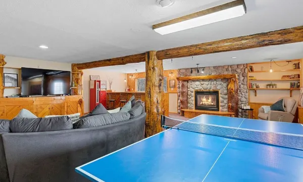 Spread out with two large living rooms with flat-screen TVs. Relax by the stone fireplace on the main floor, play ping pong, or lounge on the oversized sectional downstairs.