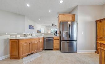 Guests will enjoy our lakefront balcony with seating to enjoy morning coffee or afternoon cocktails. There is an additional lower level patio with fire pit and extra seating to relax right by the lake. There is also a 4 burner Blackstone grill on the lower level for all your grilling needs.