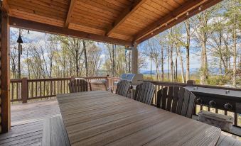 The main level deck, accessible from the dining or living rooms, is sure to be your favorite place to enjoy the fresh mountain air while dining at the covered outdoor dining table. Grill your next meal on the gas grill or Blackstone gas griddle.