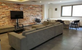 Located inside the building is a gym, lounge area with a TV, indoor parking, elevator , and several apartments with a two single bed/one queen size bed option.