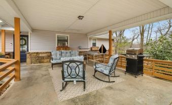 As you arrive at The Dock you'll immediately notice how welcoming the front of the home is with a covered front porch, lounge furniture, propane grill for grilling in any weather and a foldable outdoor ping pong table. You'll also find that there is ample parking for about 6 vehicles in the circle driveway and access to a locked shed if you need secure bike storage. There is also a bike wash station on the side of the front porch for those in town to explore the mountain biking scene.