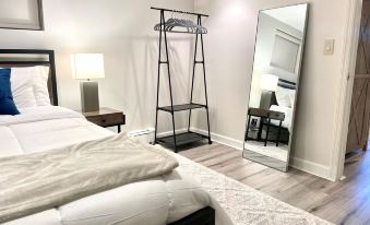 The bedroom has a queen bed, dresser with plenty of draws, a standalone clothing rack, with hangars, and two shelves for other items, and a new Smart TV. The ironing board is located on the back of the bedroom door, and your iron is in the armoire outside of the bedroom. You will also have a full-length mirror to see how fabulous you are!