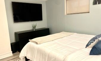 Entire private apartment. The “self-check-in” entrance to the private basement suite is separate from the entire house and includes private parking in the driveway. Street parking is available as well. You are welcome to enjoy the basketball hoop as well!