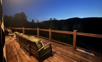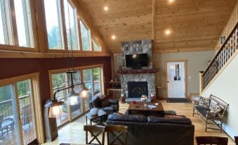 The Chalet has 4 bedrooms and 3 1/2 bathrooms. It will comfortably sleep up to 10-12people. Two family rooms allow plenty of room for everyone. Enjoy the surround sound, and quick access to your Netflix account. Take in the magnificent views of the mountains from the deck. After a long day of activities, come back and relax in the hot tub or gather around the fire pit. The kitchen is well equipped and included in your rental are towels and linen. Laundry faculties are also available on site.