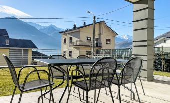 Modern, beautiful 2-family house 444 m a.s.l., 2 storeys, built in 2024, surrounded by meadows and vineyards. In the centre of Bianzone 6 km from the centre of Tirano, 14 km from the centre of Aprica, 44 km from the centre of Bormio, in a quiet position residential area (villas), 14 km from the skiing area, 2 km from the river, south-east facing position. Private: garden (fenced) with lawn. Garden furniture, barbecue house. In the house: storage room for bicycles, storage room for skis. Roofed, parking at the house. E-charging station. Supermarket 450 m, restaurant, bar, café 300 m, bus stop 100 m, railway station "Bianzone" 1.2 km, thermal baths "Terme di Bormio" 44 km. Nearby attractions: Train Bernina Express:Tirano-St Moritz 6 km, Lago di Poschiavo (CH) 14 km, Monte Combolo (mt. 2901), Monte Masuccio (mt. 2816). Well-known ski regions can easily be reached: Aprica 14 km, Bormio 44 km, Livigno 79 km. Well-known lakes can easily be reached: Lago di Como 60 km. Hiking paths: Sentiero dei Contrabbandieri, Monte Padrio, Alpe e Lago Schiazzera, Sentiero Valtellina, Sentiero del Sole. Please note: car recommended. "Guarnelle House 1", 4-room semi-detached house 100 m2 on 2 levels. Spacious and bright, partly with sloping ceilings, comfortable and modern furnishings: large living/dining room with sliding door, panoramic window with 1 double sofabed, dining table and TV. Exit to the garden. Kitchenette (dishwasher, 4 induction hot plates, toaster, kettle, microwave, freezer). Bathroom. Upper floor: 1 room with sloping ceilings with 1 x 2 bunk beds. Exit to the terrace. 1 room with sloping ceilings with 1 x 2 bunk beds. Exit to the terrace. 1 double bedroom with sloping ceilings. Exit to the balcony. Shower/bidet/WC. Heating, air-conditioning. Balcony, large terrace, garden, lawn. Terrace furniture, balcony furniture, barbecue. View of the mountains and the valley. Facilities: washing machine, children's high chair, baby cot, hair dryer. Internet (WiFi, free). Please note: suitable for families. Non-smoking house. Maximum 2 pets/ dogs allowed. Private entrance. IT014008C2JMBTUZAH