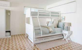 Step outside through sliding glass to a north-facing wraparound terrace under shelter and shade, complemented by private lounge/dining and the use of a 5-burner Jumbuck BBQ on natural gas. Sit back and relax under an oversized sun umbrella with more than enough seating space to include the whole group for meal times.