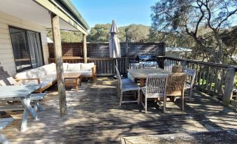 Great value accommodation in central Blairgowrie. Relax with friends and family, either inside in front of the open fire enjoying the large Smart TV and WiFi or on the large decks at the front and rear of the house, allowing you to enjoy the morning sun over BBQ breakfast on the North facing rear deck amongst the Moonah trees and sundowners on the front deck. A short walk from Blairgowrie village, Bridgewater Bay and National Park rock pools. Comfortably sleeps 7 people across 3 bedrooms two with Queen beds and the third with bunks and single bed. New bathroom with large shower and toilet area recently renovated. Ample off street parking for four plus cars and large rear backyardAbout pets:No pets allowed.About children:Children allowed: ages 0-17.About smoking:Smoking is not permitted.About events:No events allowed.