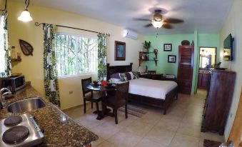 The suites are uniquely and exquisitely decorated with handmade furnishings and surrounded by local Panamanian arts. Each suite is an en suite having its own connected private bathroom. Every suite leaves you feeling pampered in a luxurious tropical paradise yet connected to the outside world with wireless internet service. At night kick back and relax with a book from our collection. Or turn on the TV and hit the Netflix button. No need to login into your account. Netflix is on us while you stay with us. The TV is ready for you to binge when you get here.