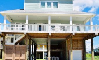 “Hidden Treasure Chest” is centrally located in the family-oriented Holiday Beach subdivision. The beach is a short, easy walk from your home. It is also conveniently located to The Big Store and several restaurants. The home has everything you need including a well-appointed kitchen, comfortable therapeutic mattresses and pillows, internet television throughout, Wi-Fi, 4 porch swings, huge downstairs bar with 12 high top chairs, fire pit, and a heated outdoor shower.