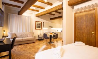Great place. We stayed for two weeks in the King suite which had everything one would want, including elevator, bathtub, full kitchen, washing machine. The management staff is available and responsive. Ten minute walk to train station for day trips and ten minutes to the main square. Cafe connected to building, two restaurants across the street and a superb restaurant (L'Arcimboldo) a block away. They even offered complimentary cleanings.