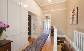 The high ceilings and brick walls keep the house lovely and cool in Summer. We also put portable air conditioners and pedestal fans in the rooms during summer to help keep you comfortable. There is a cosy wood fire in the lounge to keep you warm in Winter, as well as heaters in all bedrooms and in the cellar.