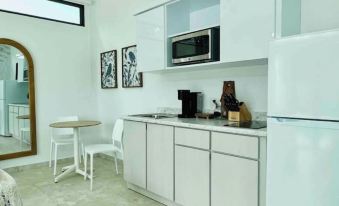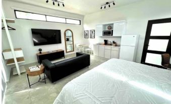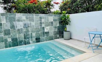 Suite apartment filled with the beauty and vitality of nature. It's a space to rest and feel peace and tranquility. This suite features: personal private pool, spacious bathroom with indoor garden, balcony, terrace, king bed, modern decoration, living room, air conditioning, 70” Smart TV, kitchenette and dining area. Private parking.