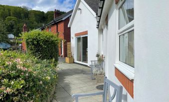 A single-storey detached property, situated across a driveway shared with the owners, Tanrallt Cottage is set in a quiet hamlet with views overlooking open farmland. Bounded by a stream, our cottage is comfortably furnished and offers a double bedroom, large fitted kitchen, shower room and a large living/dining room with a sofabed (small double). Patio doors open from the living room onto a small patio area with garden furniture.