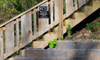 This is a carriage cabin adjacent to a main cabin, but having all its own parking, with hot tub and fire pit area surrounded by a privacy fence! It is a hillside cabin and has several steps to access entrance.About pets:No pets allowed.About checkOut:Check out before 10:30 AM.About children:Adults only.Two story cabin with many stairs/not child proofed.About customRules:We are not responsible for any loss, injury, or death, due to use of hot tub or fire pit area. Use at your own risk..Any evidence of smoking or marijuana inside the cabin will cause an additional fee of 250.00 for extra cleaning.,ADA service animals are welcome but must be crated if guests are absent from property and leashed outside due to potential wildlife encounters..About checkIn:Check in after 3:00 PM.About smoking:Smoking is not permitted.About minBookingAge:Minimum age to rent: 21.About events:No events allowed.