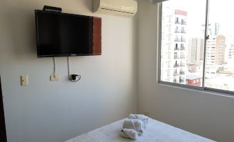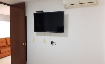 Studio apartment with double bedroom. The room has air conditioning. Cable TV including NETFLIX, the apartment has a sofa, kitchen, oven, microwave, refrigerator, blender, washing machine, coffee maker, sandwich maker, dishes. It has desk, executive chair and printer, wifi, has a balcony. The building has 24 hour security and security guard. The building has a swimming pool, sauna, gym, playground, private parking. Located very close to business centers, banks, notaries. It has easy access and exit by main roads.About pets:No pets allowed.About checkOut:Check out before 11:00 AM.About children:Adults only.About customRules:Guests are advised that sexual exploitation and abuse of minors in the country is punishable by criminal and administrative sanctions..It is not allowed to accommodate more than three (3) people; Guest visits are allowed in the apartment upon visitor registration at the time.,The building is residential so it is subject to rules of coexistence established by the administration. The guest is asked to send their ID in the app.About checkIn:Check in after 3:00 PM.About smoking:Smoking is not permitted.About minBookingAge:Minimum age to rent: 18.About events:No events allowed.