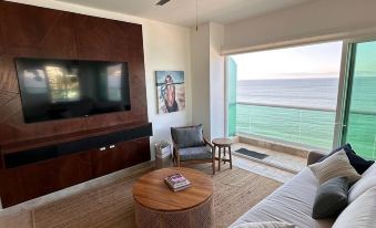 Brand New Oceanfront condo in the HEART of Bucerias (Centro). Walk out the door to hit the beach OR enjoy endless restaurants, bars and live entertainment at your footsteps! High floor with a wraparound balcony opening to breathtaking, 180-degree ocean views. Automatic blinds (push a button, take in the views) with expansive sliding doors, give you a sensation of open space. Rooftop infinity pool, beach club access, elevator, gym, 24x7 security and private parking.