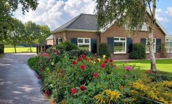 In the middle of the country, near Utrecht, we rent out part of the front house of our farm as a holiday home for 1 - 7 people. An entire house with spacious living room en suite with well-equipped kitchen, toilet, bathroom with shower, bath and second toilet, 3 bedrooms in total, two of which with spacious double beds with fine mattresses and one bedroom with a very large double bed and one single bed, on request two cots for children can be placed. We also offer you part of our spacious flower garden and a large terrace with a nice lounge sofa. At the plot path there is a corner with a cozy picnic table.