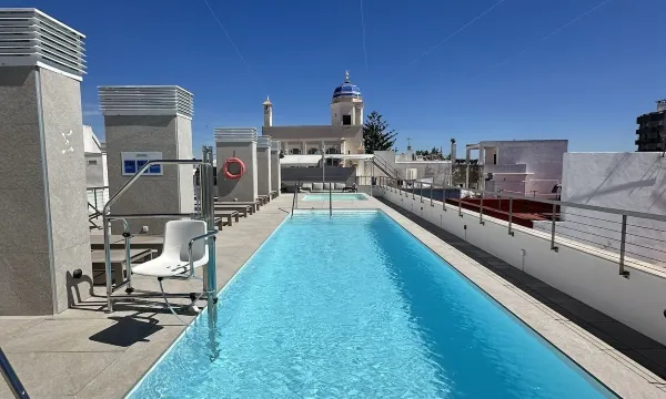 A great apartment. The best location in Cádiz right off Plaza Mina. Very clean and the rooms have great facilities. Front desk is very helpful and there during business hours. Was impressed about the gym too. And of course the rooftop terrace and pool!