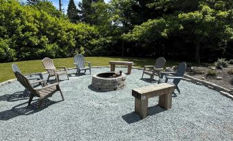 You will have your own private space, large grass area for playing games and relaxing in the shade of the trees and a large outdoor fire pit area to gather everyone around.