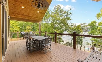 Hiwassee Holiday is conveniently located on Norris Lake near I-75 and features a great lakefront location, featuring a private dock with 2 boat slips, a large lounging area, and a firepit.